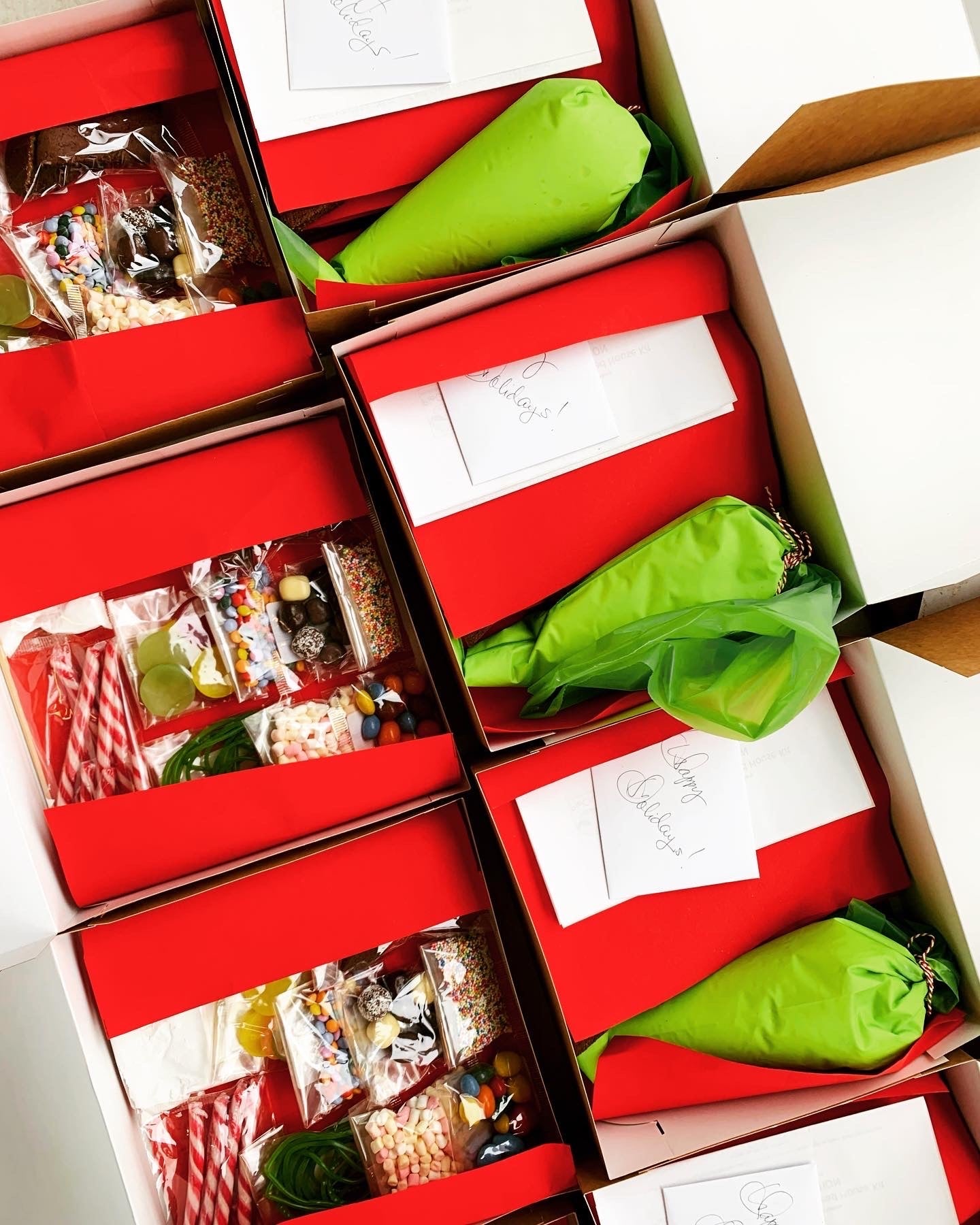 A tasty tradition for the entire family! Our gingerbread houses fill your home with the scent of the season, right up until the moment you can’t resist eating them. Made with a classic dough featuring molasses, the house is 100% edible. We package the kit in 2 boxes, tied with a festive red ribbon and a holiday card. Along with the gingerbread walls, roof, and shutters, the kit also includes royal icing in a pastry bag, bags of colorful candy, “snow” (powdered sugar, and a gold board base. And don’t worry about assembly. We also deliver easy instructions to make sure everything stays fun.